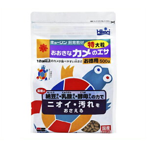 [特長]:■カメに必要な栄養を全て含んだカメの総合栄養食で、丈夫に飼うことが出来ます。■納豆菌・乳酸菌・酵母菌とその代謝物の力で水の臭い・汚れを抑えます。[仕様]:■対象:カメ(12cm以上の大きさ)■内容量:500g■原産国:日本[
