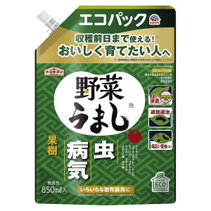農薬(殺虫殺菌剤)農林水産省登録:第23372号幅広い野菜と果樹に使えます。速効性が高く、幅広い害虫に効果を発揮します。お好きな散布器具に入れて使えるエコパウチ。特長●おいしく育てたい人へ収穫前日まで使える※適用病害虫の範囲及