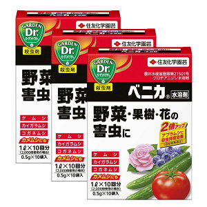 商品名 ベニカ水溶剤 内容量 [0.5g×10袋]×3個 有効成分 クロチアニジン 薬剤登録 農林水産省登録第21501号 性 状 青緑色水溶性細粒 剤 形 水溶剤 販売元 住友化学園芸株式会社 ●商品特長 ◆野菜・果樹・花など幅広い...