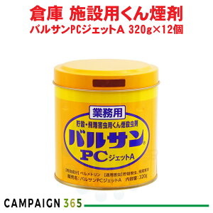 業務用 バルサンPCジェットA 内容量 320g×12個 成分 ペルメトリン(ピレスロイド系)7.5% 剤形 くん煙剤 使用量 天井までの高さ2.5mをめやすとして48〜65坪(160〜220m2)に1筒 適用 不快害虫用。