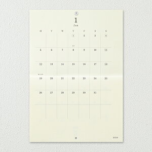 たっぷり書き込める壁掛けカレンダー 「MD用紙」厚口を使用した “余白”を愉しむカレンダー。12ヵ月のカレンダーページだけで構成したミニマルなデザインのカレンダーです。 シンプルなステッチャー製本で気軽に「書く」をお愉しみいた