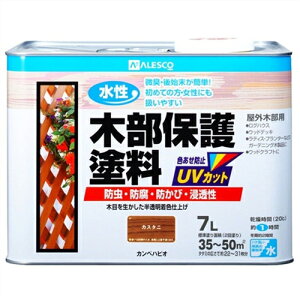 「木目を生かした仕上げ」 木材に浸透し、木目を生かした半透明着色仕上げになります。 ■「木材に浸み込み易い」 水性木部保護塗料と比べ、木材への浸透性が高く、油性木材保護塗料より防腐効果が高く、中からしっかりガード! ...
