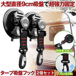 レバー式で強力固定!テントやタープ、日よけシートの設置に♪ カーサイドタープ連結用のDカン付き吸盤フックです。 車のルーフパネルやボディに吸着可能◎ キャンプなどのアウトドアシーンで大活躍のアイテム☆ ※S字フックは付属しま