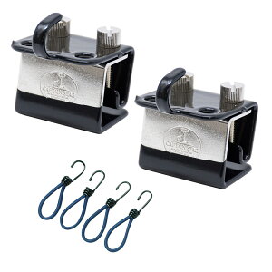 ハイエースなどのレインモールが付いている車に、タープやシートを簡単に張ることができるタープフック(タープクリップ)です。 はさみ込み部分はギザギザになっていて、レインモールやタープをしっかりとキャッチ! ロックは工具などは
