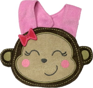←画像をクリックすると拡大画像がご覧頂けます。 カーターズの スタイ/よだれかけ。おさる/モンキーの形が可愛いらしいデザイン★表・裏地ともパイルです。裏地内側に防水加工が施されています。こちらは後ろのスナップボタンで止める