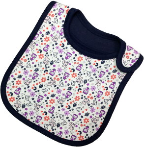 カーターズ Carter's のスタイ/よだれかけ。紺地に華やかなお花がかわいらしいデザイン♪表、裏ともニット地です。裏地内側に防水加工が施されています。