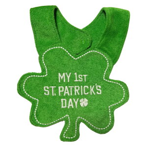 カーターズの スタイ/よだれかけ。はじめてのセントパトリックデー用のデザインです。パイルを2枚重ねてあります。表・裏地ともパイルです。首の後ろでスナップボタンで留めるタイプ。ベビーに優しい設計です♪ 洗濯機でお洗濯できます