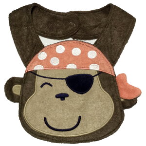 ←画像をクリックすると拡大画像がご覧頂けます。 カーターズCARTER'Sの スタイ/よだれかけ。海賊モンキーの形が可愛いらしいデザイン★ 表・裏地ともパイルです。こちらは後ろをスナップボタンで留める...