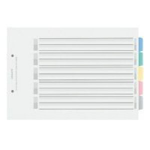 m●仕様:6色6山+インデックス(7枚1組)●ガバット・背幅伸縮ファイル用●穴数:2穴●穴間隔:80mmピッチ●材質:紙(仕切りカード/古紙パルプ配合)●注文単位:1パック(10