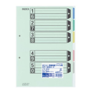 【商品説明】十進分類に。【仕様】●サイズ:A4タテ●外寸法:縦297×横210(+見出し12)mm●仕様:5色10山+扉紙(11枚1組)●穴数:2穴●穴間隔:80mmピッチ●材質:本体/再生紙●注文単位:1パック(10組)●グリーン購...