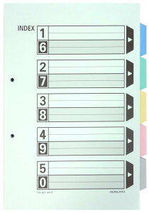 コクヨ 0120-201-594 【商品説明】●書類検索の効率アップ ●分類しやすい5分割、しかも5色で色分けができます。 ●とじ穴間隔/80mmピッチ●コクヨチューブファイル・Kファイル・Tファイル・リングファイルなどとセットでお...