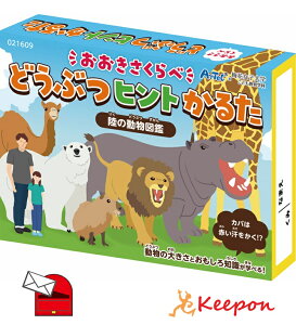 動物の大きさくらべができる!動物の雑学も学べる! 動物の雑学と大きさを学ぶことができるかるたです。 3つのおもしろ知識をヒントに動物を探そう! 41種類の動物が登場! 3種類のゲームができます。 1.ヒントかるた 2.絵合わせ 3.めくり