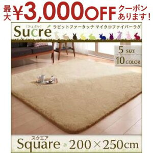 ラビットマイクロファイバーラグ サイズ 200×250cm スクエア 毛足:約18mm 素材 表地:ポリエステル100% 裏地:不織布 中材:5mm厚ウレタンフォーム 重量 約3.6kg。