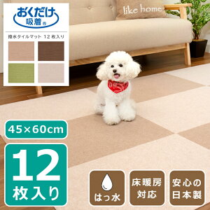 置くだけでズレない吸着マット♪自由に組み合わせできるタイルカーペット、スペースにあわせて、ハサミで自由にカットできます。撥水加工でさっと拭き取りでき、掃除機をかけても吸いあがらないでお掃除もラクラク。愛犬がお部屋の中