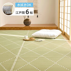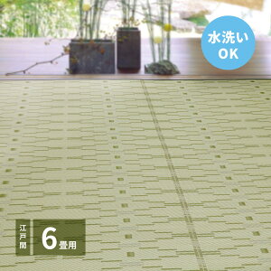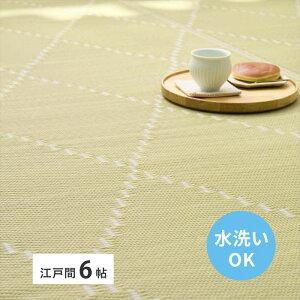 洗えるい草カーペット 四条(しじょう) 江戸間6畳 【仕様】 〇サイズ:261×352 〇厚み:3mm 〇材質:表面/ポリオレフィン系複合樹脂、双目織 〇洗濯:水洗い<b...