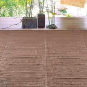 新しい畳の保護や、お部屋の模様替えに。ストロー状にした樹脂素材をい草と同じ要領で織り上げた、い草風カーペット。丈夫で傷つきにくく、日焼けなどによる色褪せにつよいため、色合いや風合いを長く保ちます。また、汚れても手軽に