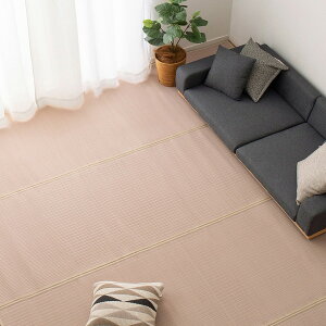 パステルカラーがかわいい、水拭きできる素材のい草風カーペット。パイプの表面に筋が入っている筋入りパイプで、肌に密着しないからベタベタしにくく、汗ばむ季節にもおすすめ。また、パイプ内の空気層の保温効果で床からの冷気を防