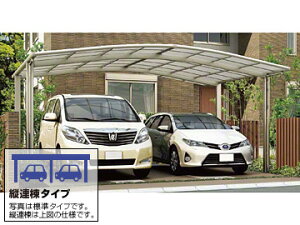 プレシオスポート アール型 縦連棟セット 2台用は車2台の縦列駐車が可能なエクスショップオリジナルブランドの奥行連結タイプのカーポートです。耐風性能は基準風速Vo=34m/s・耐積雪性能は20cm相当(600N/㎡)が備...
