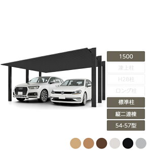 カーポート SC 1500 2台用 縦2連棟 54-50型 標準柱(H22)。[サイズ(mm)] 幅5458×奥行10025×高さ2465。[材質] 本体:アルミ形材。[カラー] アルミ色。