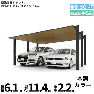 6053.0mm × 奥行き 11420.0mm × 高さ 2200.0mm。カラー木調色。用途2台用。素材アルミ。対応タイプ積雪地型:風速46m/秒相当。