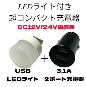 商品名コンパクトDC充電器2ポート&LEDライト付。商品内容・コンパクトDC充電器・LEDライト。適合車種国産車DC12V・24V専用。