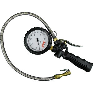 ■商品説明: 米式バルブのタイヤに空気を充填するための、エアタイヤゲージです。 測定範囲は1000kPaまでと幅広く、バイクからトラックまで幅広く使用することができます。 クリップチャック式なので、充填中にチャックを押し当てる必要がありま