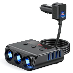 【2025進化モデル シガーソケット3連 増設型車載充電器】 このシガーソケット車載充電器は、シガーソケット分配器3連(×3)、USB-C(×3)+USB-A(×3)のポートを搭載。車載シガーソケットの総出力は228W...