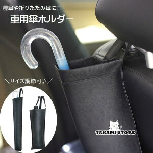 ヘッドレストに引っ掛けて使う事ができる車用傘ホルダーです。面ファスナー付きで長傘?折り畳み傘、両方に対応?濡れた傘をサッとしまう事ができて便利です◎【サイズについて】画像をご参照ください。【素材について】フェイクレザー