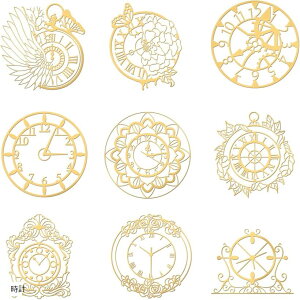 金属ステッカー 時計 レジンステッカー ステッカー 4x4cm 金属製シール パワーシール 金属 デコ素材 スマホ装飾 アクセサリーパーツ ゴールドブランドOLYCRAFTカラー時計「9スタイル...