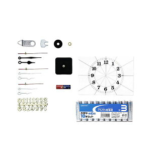 【商品説明】図工・工作・クラフト・ホビー 時計・クロック☆この商品は 【クォーツ時計Cセット】 と 【アルカリ乾電池 単3形10本パックセット】 のセットです。単3電池1本付針は3種類入りです。【商品サイズ(単位mm)】本体...