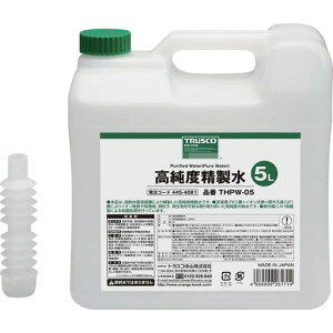 トラスコ中山(TRUSCO) 高純度精製水 クリア 5L THPW05 超純水製造装置により精製した高純度精製水です。逆浸透膜+イオン交換+限外ろ過膜によりイオン物質や有機物、微粒子、微生物を可能な限り取り除いた高純度の純水です...