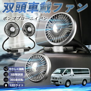 扇風機 車載 後部座席 USB 静音 ツインファン dcモーター 車載扇風機 車用扇風機 サーキュレーター 角度調整 風量調整 ヘッドレストに設置して後部座席までエアコンの風を循環。 車内をより快適にできるアイテムです...