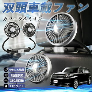 【商品詳細】 ●車載扇風機を設置することで、車内の空気を効率的に循環させ、エアコンの冷気を後部座席までしっかりと届けます。 ●2つのファンヘッドが搭載させており、それぞれに電源や角度の調整が可能です。 ●角度は左右に約180°