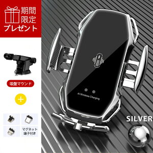 車用のワイヤレス充電器、Qiワイヤレス充電、自動開閉センターつき、さらに「マグネット充電」機能を追加した車用ホルダーです。QI非搭載スマホ機種にも使える「マグネット充電端子」(Lightning/Ty...