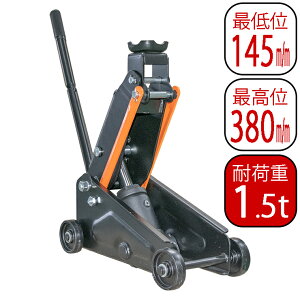 油圧式 フロアジャッキ ガレージジャッキ 1.5t 最高位 300mm 最低位 125mm FJ02 [fj02]車のタイヤやホイル交換作業の必需品!油圧式のジャッキでジャッキアップもらくらく。【仕様】最大荷重:1.5t本体重量:9....