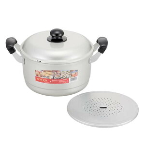 「ゆうげ紀行」シリーズの兼用鍋です。 軽くて扱いやすいアルミ製のお鍋は、茹でる・煮る・蒸すなどいろいろな場面で重宝します。 目皿付きなので、セイロがなくても簡単に蒸し物が楽しめます。 表面にはアルマイト加工が施されているので、お手入れも簡