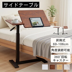 ベッド横やソファ横に 移動らくらくキャスター式 高さ無段階調節 昇降式テーブル サイドテーブル キャスター式 ベッドサイドテーブル 昇降テーブル パソコンデスク zwd SS07