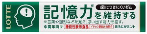 歯につきにくいガム板 記憶力を維持するタイプ は、記憶力(言葉や図形などを覚え、思い出す能力)を維持することが報告されている、イチョウ葉抽出物を配合している機能性表示食品です。手軽に加齢に伴う脳機能の維持に役立てるこ