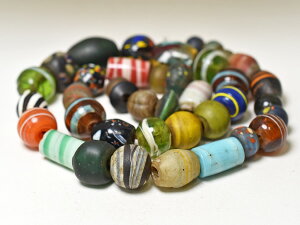 インド製のやや古いガラスビーズ一連です。ヒマラヤ等の登山の荷揚げや案内役として名高いネパールのシェルパ族に伝わるビーズです。色、形状ともにバラエティに富んだ味のあるビーズです。ハンドメイドアクセサリや小物製作用のパー
