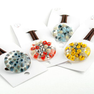 商品説明 ハンドメイドのとんぼ玉を使ったガラスのヘアゴムです。 髪飾りのヘアゴムとしてだけでなく、腕にはめてアームバンドにしたり、カバンにつけたり、ストールやマフラー留めなど、いろいろな用途にご利用いただけます...
