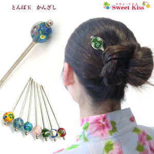 商品説明 1つ1つ職人が手作りしたとんぼ玉を使った、ガラスのかんざしです。 小紋や紬などの普段着の着物や、夏は浴衣の髪飾りに。 また、和のかんざしとしてだけでなく、洋服に普段使いもできるので、大人からお子さままでご利用いた