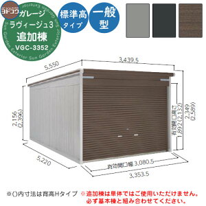 ヨドガレージ ラヴィージュ3 VGC-3352 追加棟 一般型 標準高タイプ 車庫 シャッター ガレージ 自動車 バイク 自転車 倉庫 おしゃれ シンプル 戸建て 庭 かわいい 大容量 大型 アウトドア...