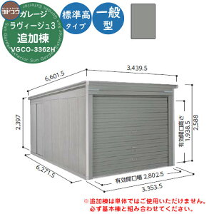 ヨドガレージ ラヴィージュ3 VGCO-3362H オーバースライディングドア型 追加棟 一般型 背高Hタイプ 車庫 シャッター ガレージ 自動車 バイク 自転車 倉庫 おしゃれ シンプル 戸建て 庭...