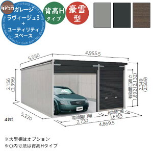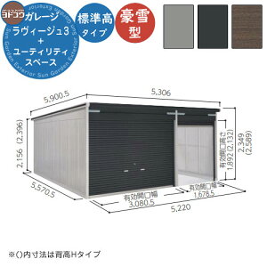 ヨドガレージ ラヴィージュ3 標準+ユーティリティスペース型 VGCU-3052H+1952H 豪雪型 背高Hタイプ 車庫 シャッター ガレージ 自動車 バイク 自転車 倉庫 おしゃれ シンプル 戸建て...