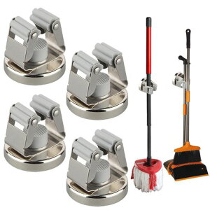 MUTUACTOR マグネットほうきホルダー 4個パック 丈夫なほうきホルダー 吊り下げ用 磁気マウント 磁気ツールホルダー 丈夫なホルダー ガレージ キッチン 洗濯道具 オーガナイザー 管理用 (シルバー) [釘やネジ不要、マグネッ...