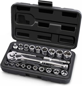 【セット内容】差込角12.7mm(1/2インチ)のツールセットです。12角ソケットセット(10、12、14、15、17、19mm)、6角ソケットセット(8、9、10、11、12、13、14、15、16、17、18、19、20、21、2...
