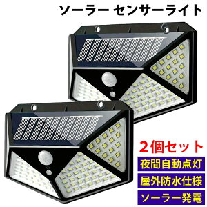 ■商品名 ソーラーセンサーライト2個セット ■商品説明 ・100個のLEDライトで明るく照らす 4面に付いた合計100個のLEDライトが、270°の広範囲を明るく照らします。 ・センサー付きで3つの点灯モード 昼間は消灯し夜間になると...