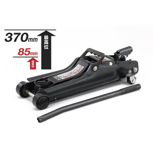●ローダウン車対応! ●安心・安全のスローダウン機構搭載。 ●軽自動車から普通自動車のタイヤ交換やメンテナンスに! ●キャリングハンドル付き。 ●収納ケース付き。 ●最大荷重:2ton ●揚幅:85〜370mm ●本体サイズ:巾217...
