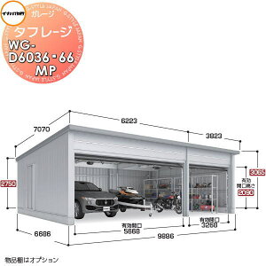 イナバ物置 稲葉製作所 タフレージ WG-D6036・66MP 一般型サイズ(mm)間口9886奥行6686高さ3065 開口寸法:幅5668・3268高さ2090 床面積:64.89平方メートル(19.66坪)重量(kg)約2509。