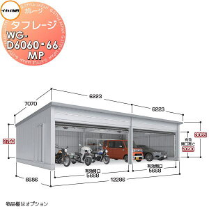 [商品名] イナバ物置 稲葉製作所 タフレージ WG-D6060・58MP 一般型 [サイズ(mm)] 間口12286×奥行5886×高さ3065 開口寸法:幅5668・5668×高さ2090 床面積:71.07平方メートル(12.
